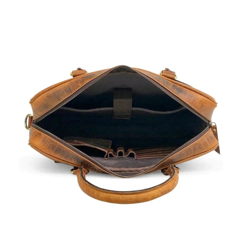 The bag is also divided into compartments which enable you to keep your things perfectly organized. Genuine buffalo leather laptop bag Quality zippers are stitched on the bag, curated with buffalo leather as its material, which is considered to be dense and considered to be the most durable among all types of leather.